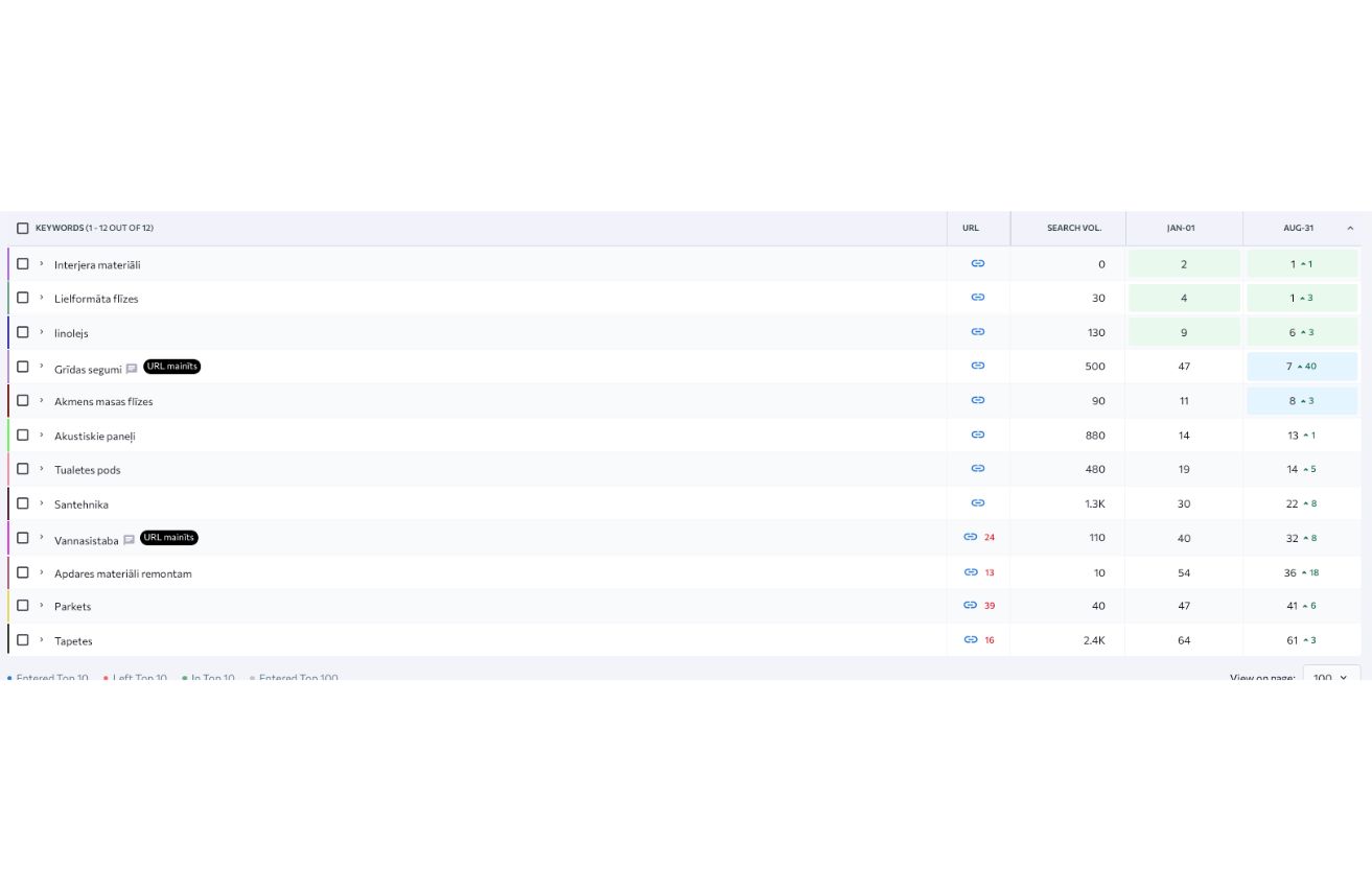 Esam sadarbojušies ar vienu no lielākajiem Latvijas daudznozaru tirdzniecības uzņēmumiem. Katrai uzņēmuma pārstāvētajai nozarei ir atsevišķa mājaslapa, taču līdz šim uzņēmums nebija pievērsis uzmanību mājaslapu virzīšanai Google meklēšanas rezultātu TOP pozīcijās, līdz ar to liela daļa potenciālo klientu Google meklētājā atrada konkurentu produktus.