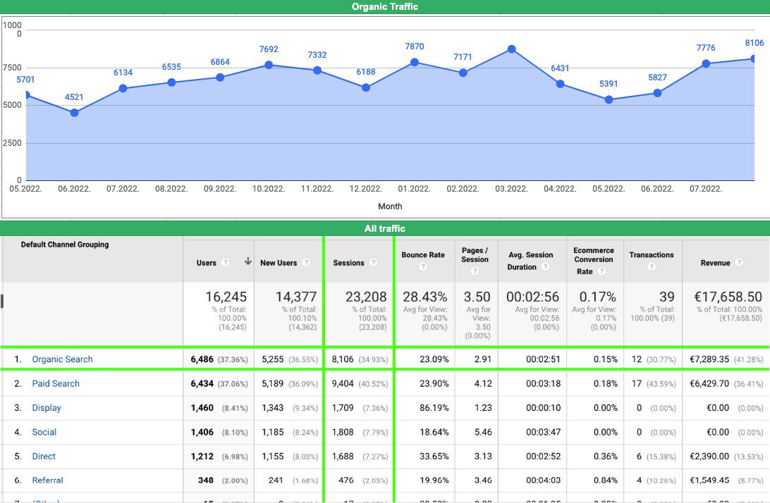 Lai sasniegtu maksimāli labus SEO rezultātus, ir svarīgi sadarboties – klientam un mums. Šajā projektā tas veicās lieliski! Stratēģiski izstrādāts un ieviests darbu plāns, palielinot ne tikai lapas apmeklētību, bet arī ieņēmumus, nesis panākumus klienta internetveikalam.