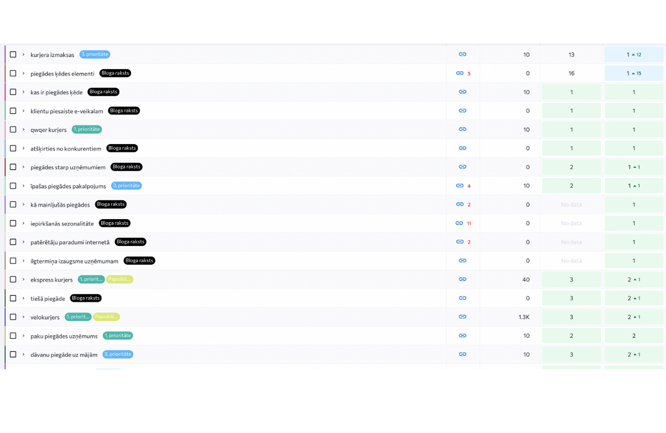 Veicām paplašinātu atslēgvārdu izpēti un izvēlējāmies daļu atslēgvārdu, kas nav tieši saistīti ar nozari, bet varētu būt aktuāli potenciālajiem klientiem. Izstrādājām satura stratēģiju, kuras pamatā bija kvalitatīvi un izglītojoši bloga raksti. Šāda pieeja palīdzēja ne tikai sagatavot vērtīgu saturu ar plašāku atslēgvārdu pārklājumu, bet arī veidot uzticēšanos uzņēmumam.