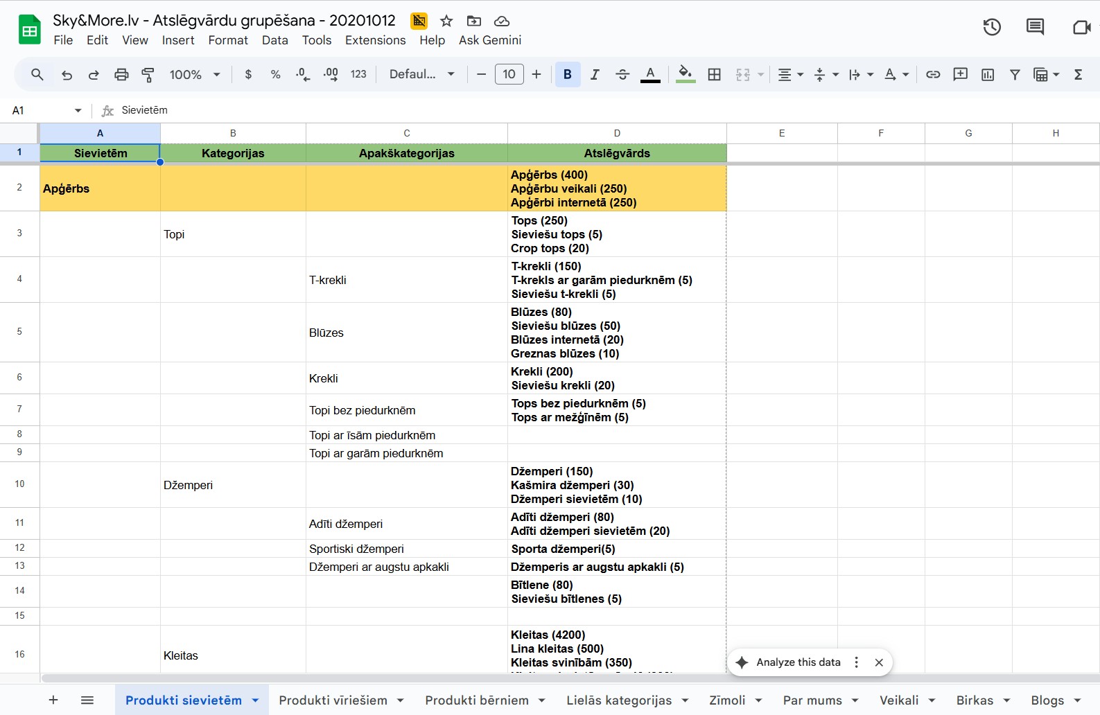 - Atslēgvārdu izpēte