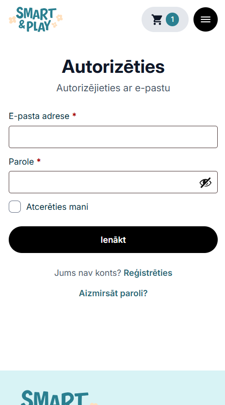 Smartandplay.com - pieteikšanās lietotāja profilam - mobile