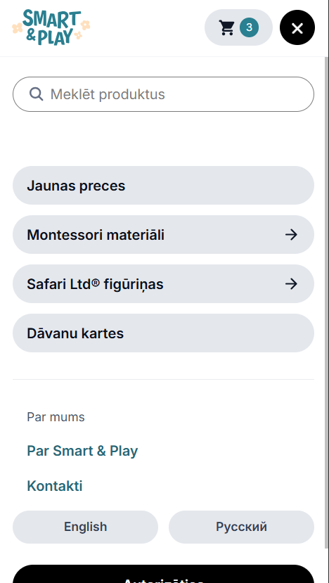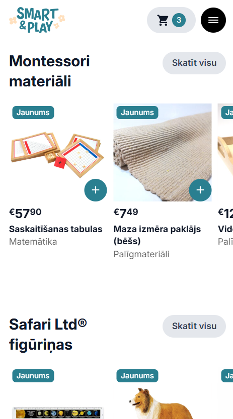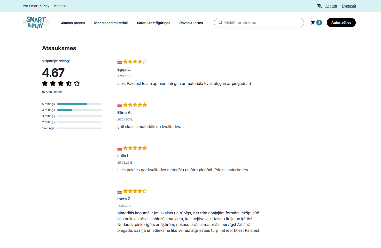Smartandplay.com interneta veikala izveideSmartandplay.com Montesori mācību materiālu pārdošanas interneta veikals