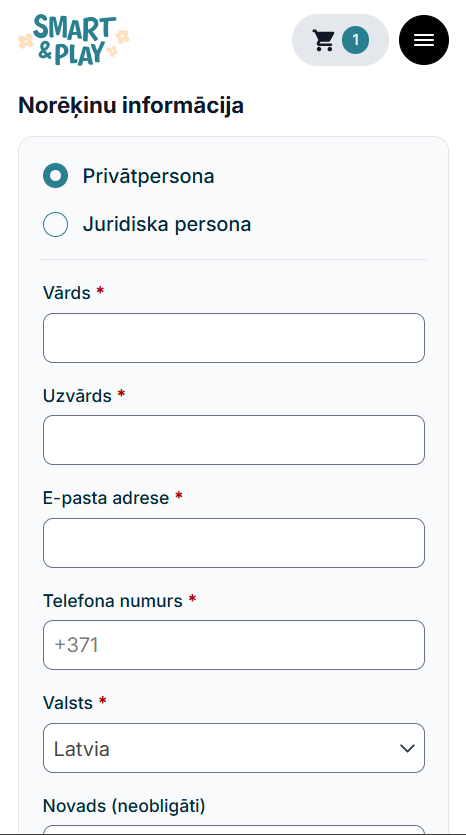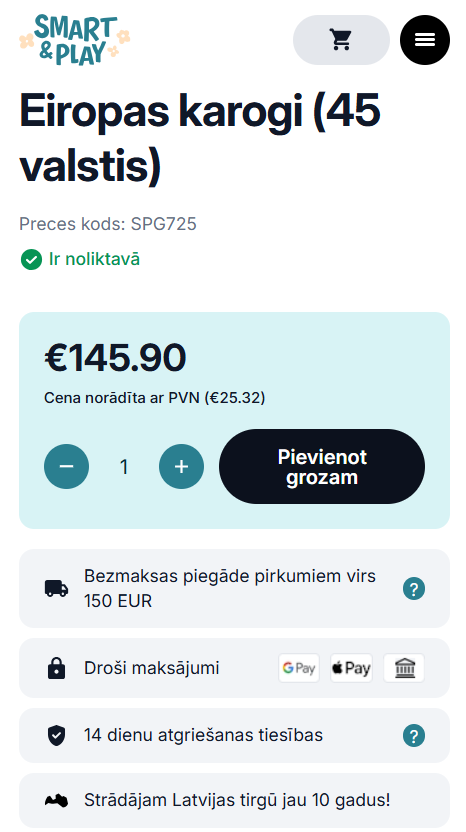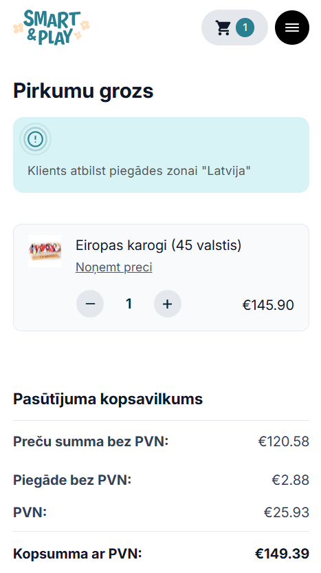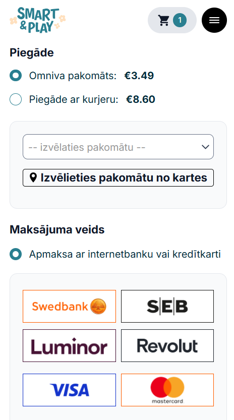 Smartandplay.com - piegādes un apmaksas iespējas - mobile