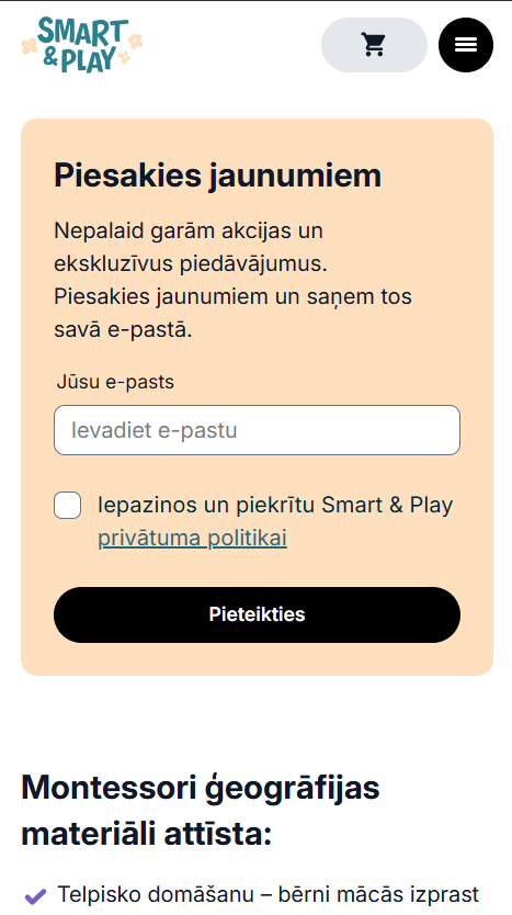 Smartandplay.com - pieteikties jaunumu e-pastu saņemšanai - mobile