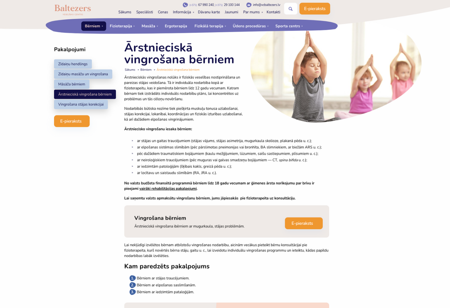 Pārskatāma mājaslapas navigācija. Individuāls atvērums katram pakalpojumam ar detalizētu informāciju. Strukturēts un uztverams informācijas sadalījums, kas nodrošina ērtu mājaslapas lietošanu. Viegli aizpildāms 24/7 e-pieraksts.